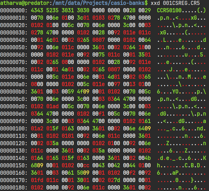 But first, I needed a better way of printing out the file contents. I started by modifying the xxd command like so: